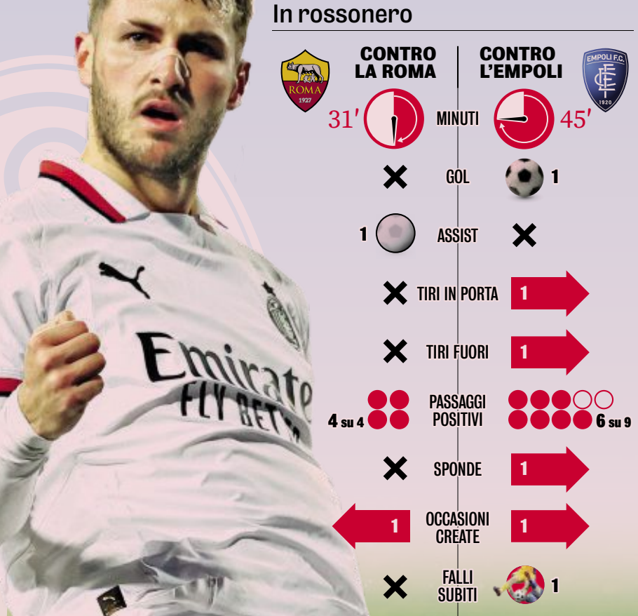L’avvio del messicano al Diavolo è stato di grande impatto, 1 assist all’esordio in Coppa Italia contro la Roma e 1 goal all’esordio in Serie A contro l’Empoli. Ci si attende qualcosa anche per il suo esordio in Champions League? Staremo a vedere. I numeri del giocatore ex Feyenoord nella sue due prime gare col Milan (fonte La Gazzetta dello Sport):
