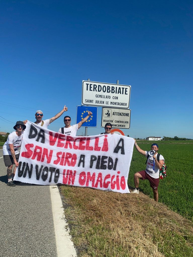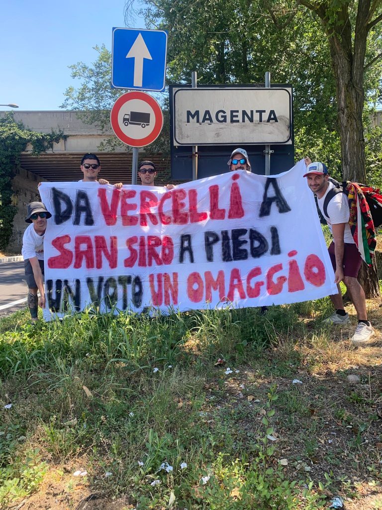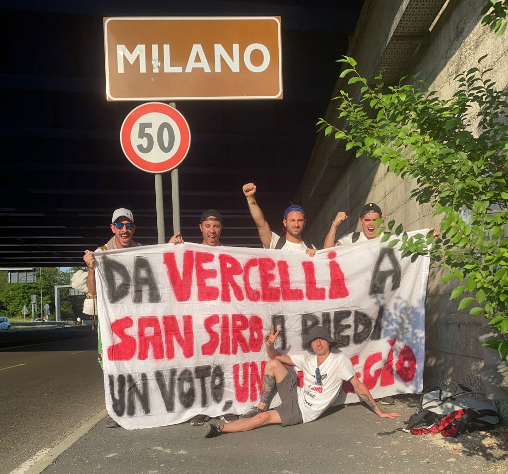 Niccolò, Emanuele, Alessio, Dennis e Fabio si sono messi in cammino da Vercelli direzione Milano, San Siro prima, il tempio dei Campioni d’Italia, Casa Milan poi. Quasi un centinaio di km di percorso: partiti alle 7.00 del mattino di domenica dal capoluogo di provincia piemontese, hanno raggiunto la loro destinazione, il piazzale del Meazza, lunedì alle 20.30.