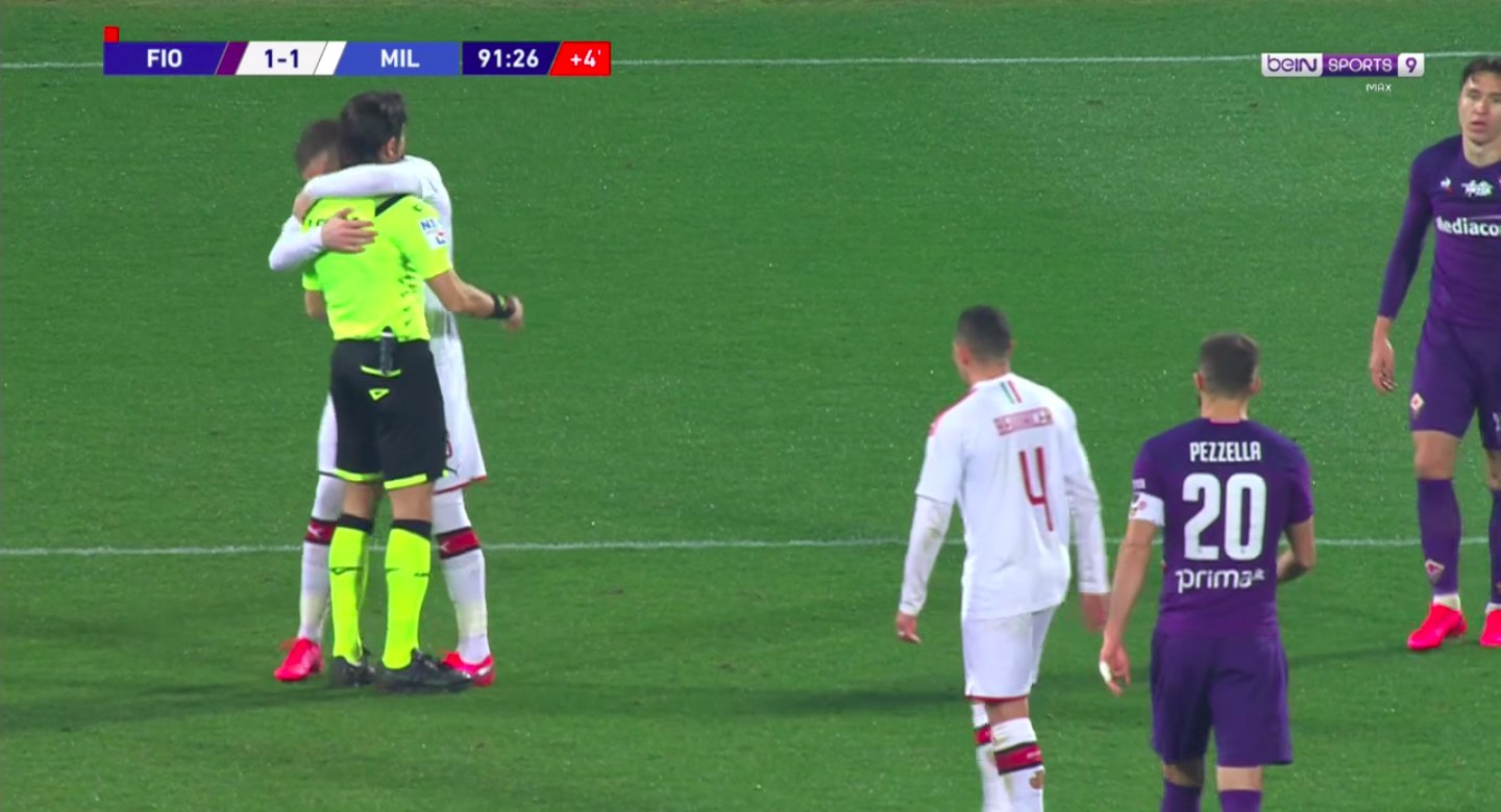 La Fiorentina pareggia con un penalty regalato dall’arbitro. Al termine del match Ante, ancora una volta protagonista, autore dello 0-1 che avrebbe regalato i tre punti al diavolo, si prende gioco di Calvarese con un gesto inatteso. Come tutto il Milan, anche Ante Rebic non ha digerito il pareggio falsato di Firenze. L’1-1 che ha segnato l’incontro, in rimonta per i viola, è arrivato su un calcio di rigore senza logica, inesistente e decretato in campo dal direttore di gara, Calvarese, senza nemmeno l’ausilio del VAR (che invece aveva segnalato l’irregolarità – altrettanto insensata – di Ibrahimovic in occasione dello 0-1 poi annullato nel primo tempo).