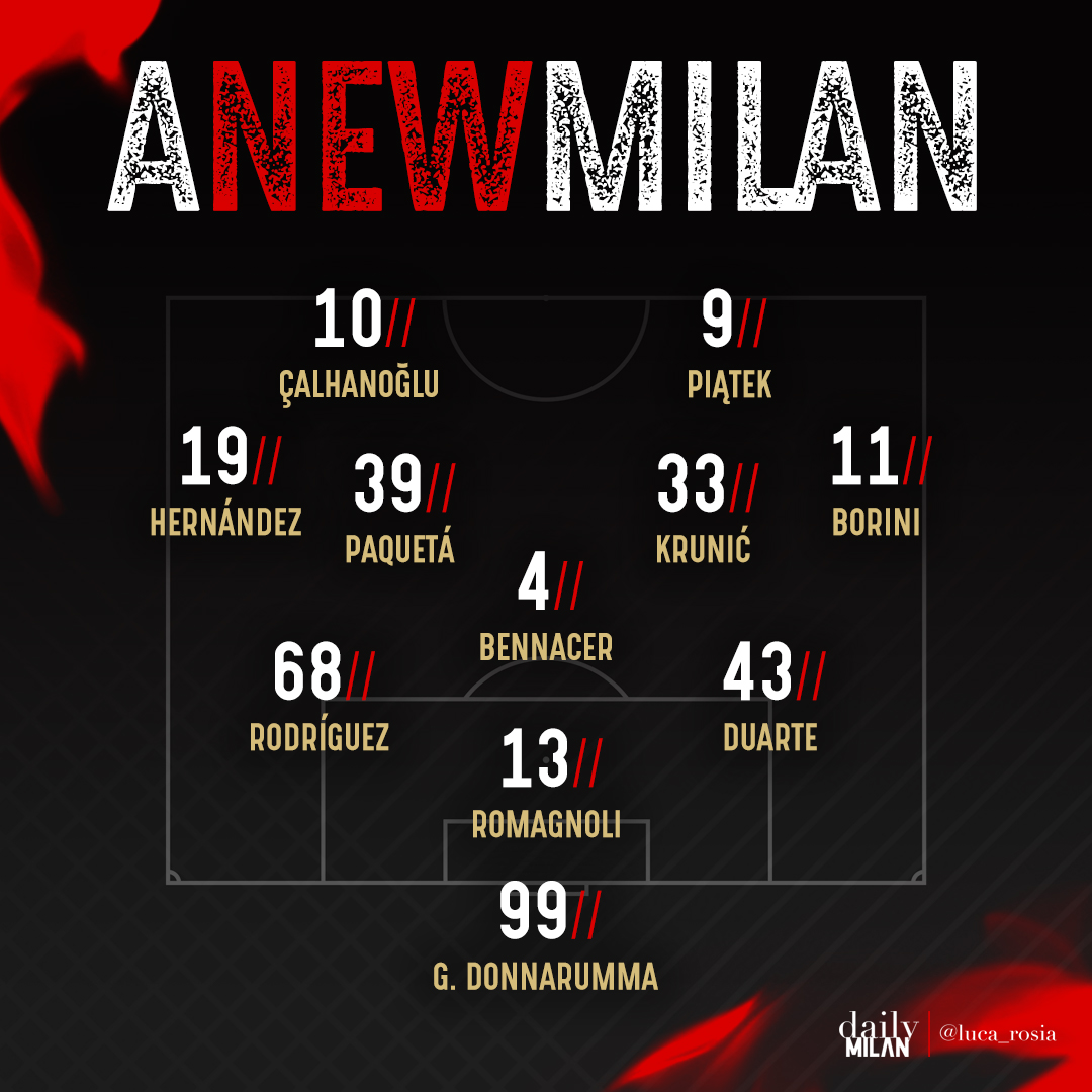 Per dare maggiore solidità alla difesa, per avere la scusa di lasciare Calabria in panchina e per dare più equilibrio, la difesa a 3 è diventata reale necessità. Un giocatore ormai quasi dimenticato è Ricardo Rodriguez che vedrei benissimo come terzo a sinistra: ha buoni dote difensive e qualità nell’impostazione, non è utile come terzino poiché non spinge in fase offensiva. Centralmente, Romagnoli è l’unico difensore con la giusta esperienza. Mantenere il centrocampo a 3 con Bennacer centrale darebbe il giusto equilibrio e la possibilità di verticalizzare rapidamente. In avanti, con l’infortunio di Catillejo, le scelte sembrano quasi obbligate.